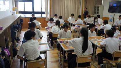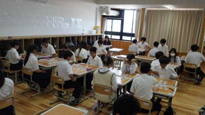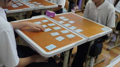 本日の授業の様子≪3時間目_7年2組≫ 公開日 2025/07/16 更新日 2025/07/16 7年生 7年2組は国語の学習。 百人一首に取り組んでいます。 上の句から下の句を探してとることができるでしょうか。