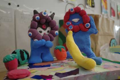 夏休みに作った工作などが、教室の後ろに飾られています。作る過程でどのようなドラマがあったのでしょうか。