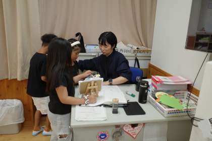 先生の机に集まって、何やら楽しそうにお話をしていました。話したいことが沢山ある様子でした。