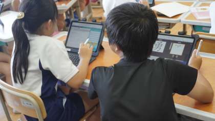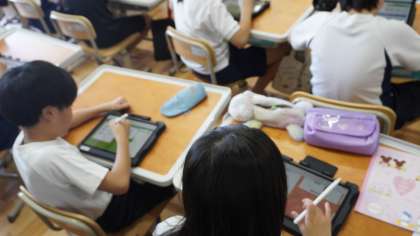 4年2組はiPadを活用してミライシードに取り組んでいました。