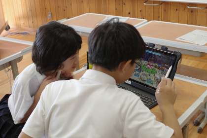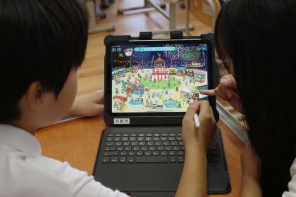 本校では、水曜日を「English Day」とし、英語により親しめるような取り組みを行っています。6年生の教室では、キソサポというアプリを使って、アルファベット探しを行っていました。