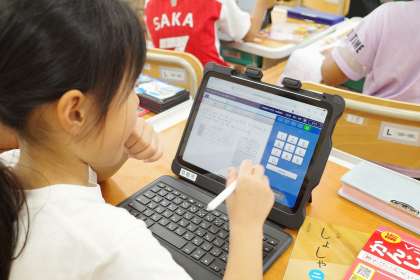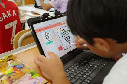 新しく配布されたペンの使い心地もよいようで、漢字の練習もやりやすくなりました。2年生の教室では、真剣に練習している様子がみられました。