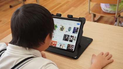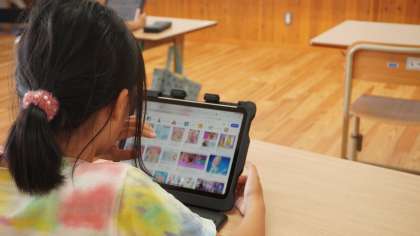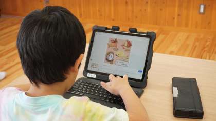 テーマを「おもしろい○○」としてペアトークの準備をしていました。