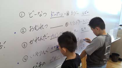 国際教室では、夏休みの宿題で頑張ったカタカナの復習をしました。