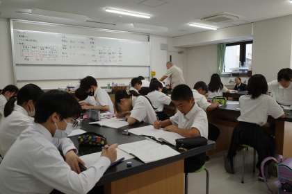6年生は理科の学習で「水溶液の性質」について学習していました。実験結果をもとに、中性・酸性・アルカリ性を判断していました。ノートのまとめ方も上手で、さすが6年生だと感じました。