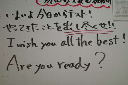 本日から2日間、後期課程の生徒は定期テストが始まります。校内には、子どもたちがベストをつくせるよう、準備期間も含めて、様々なメッセージが書かれています。自己実現に向けた1つのステップとして、大切に取り組んでほしいと考えています。