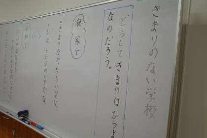 2年生の道徳の授業です。「きまりのない学校」という題材をもとに、「きまりは必要か?」という問いについて話し合っていました。さて、どんな意見が出たのでしょうか。