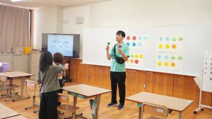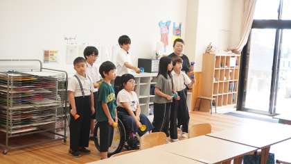 前期1組は音楽の時間。 ハンドベルで演奏の練習をしています。