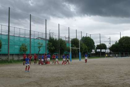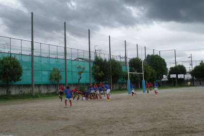 後半、洛西陵明は相手ゴールライン前でボールをキープ。そのまま、相手ディフェンスをこじ開けてトライを決めました。ナイストライ!