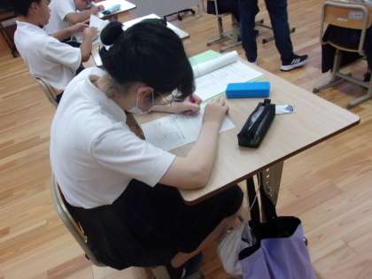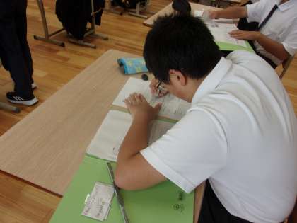 後期課程1組は英語の授業です。 一生懸命に単語の練習をしていました。