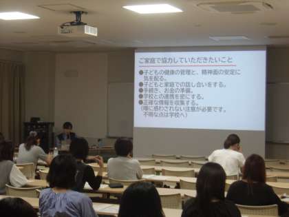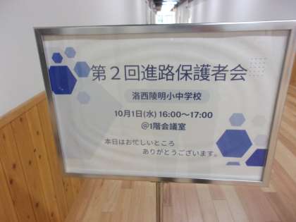 会場には多くの保護者の方々がご参加くださり、進学に関する情報や今後のスケジュール、受験に向けた心構えなどについて進路指導担当教員より説明をさせていただきました。生徒一人ひとりの将来を支えるために、学校とご家庭が連携していくが大切であると考えています。今後ともどうぞよろしくお願いいたします。