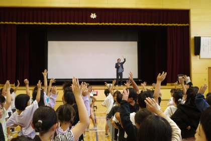 本校の校歌を作詞・作曲していただいた、“しゅんさん”に来校いただき、校歌の歌い方についてご指導いただきました。しゅんさんの指導でどんどん歌声が変わっていくのでびっくりしました。