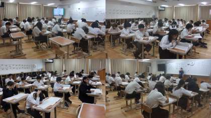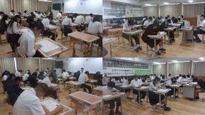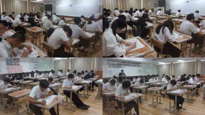 7〜9年生では、学習確認プログラムを実施しました。学習確認プログラムは、中学校での学習内容を計画的に総復習し、その達成状況を定期的にテスト形式で確認することを通して、学習の改善と学力の向上を図るものです。現在の自分の力を知るうえで定期テストと同様にとても大切なテストです。しっかりと集中して取り組むことができていました。