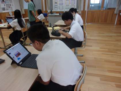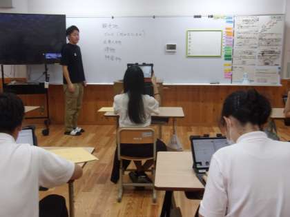 後期課程1組は社会の授業です。