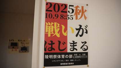 明日の体育の部に向けて校内にはポスターが。 みんなで陵明祭を創り上げましょう!