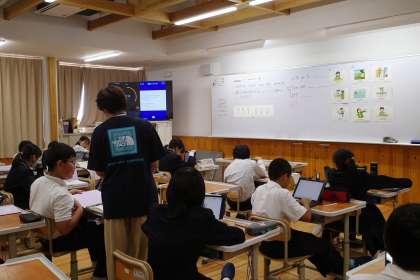 英語の学習。お勧めしたい国について調べて、英語で紹介文を作成していました。インターネットなどを使用し、自分に必要な情報を取捨選択しながら収集していました。