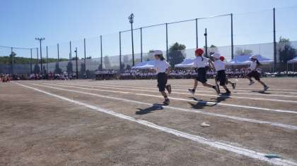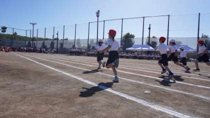 陵明祭_体育の部-4- 公開日 2025/10/09 更新日 2025/10/09 学校の様子 ファーストステージ徒競走。 1年生から4年生が50m走と80m走を走ります。 一生懸命に走る姿に後期課程生徒の応援にも力が入ります。