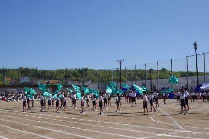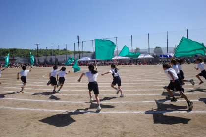 陵明祭_体育の部-14- 公開日 2025/10/09 更新日 2025/10/09 学校の様子 1stステージのリーダー、4年生のダンスにつないでいきます。 さすが4年生、フラッグを力強くふり、逞しさを感じます。 表情からも真剣な様子が伝わってきました。 1〜3年生のあこがれの4年生です。