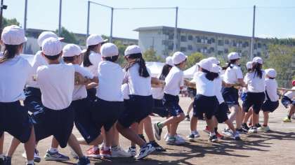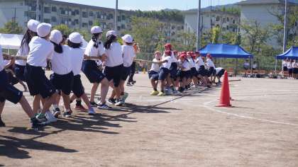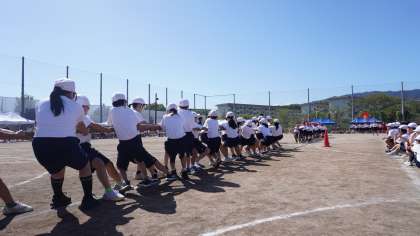 陵明祭_体育の部-16- 公開日 2025/10/09 更新日 2025/10/09 学校の様子 セカンドステージのステージ種目は綱引きです。 5年生から7年生それぞれで熱い戦いが繰り広げられています。