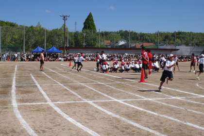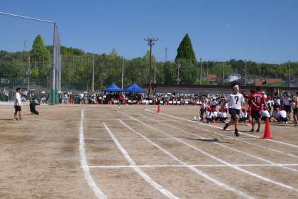 陵明祭_体育の部-21- 公開日 2025/10/09 更新日 2025/10/09 学校の様子 各学年の代表が出場する、「全校リレー」。最後は男子の部です。 一生懸命に走る選手たちに 大きな大きな歓声や応援がかけられます。 会場が一つになっての大声援。 洛西陵明のみんなが一つになれた瞬間でした。