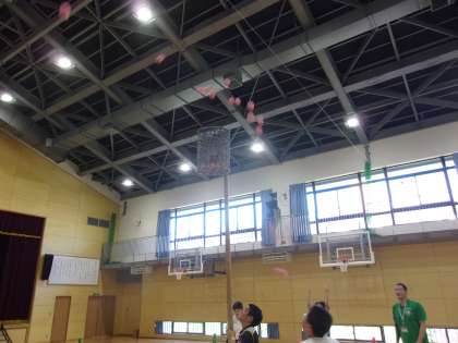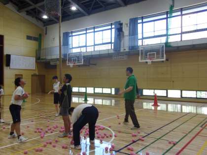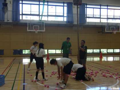 後期課程1組は、体育の授業です。 スポーツフェスティバルに向けて 玉入れの練習を行っています。