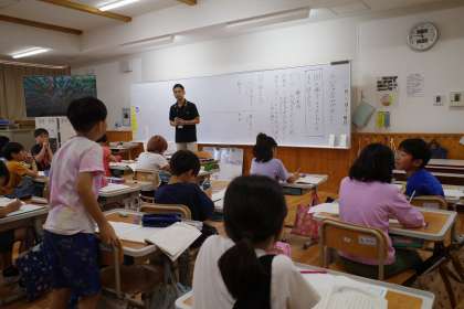 国語では「ちいちゃんのかげおくり」の学習をすすめています。最後の場面は、戦争から平和へと向かう時代に生きる家族の様子が描かれています。その描写の効果について話し合いをしていました。