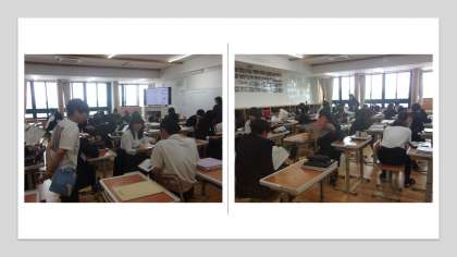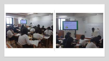 8年生は、英語と家庭科の授業です。 家庭科では調理実習に向けて 事前の学習に取り組んでいました。