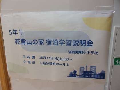 本日、花背山の家宿泊学習説明会を予定しています。 どうぞよろしくお願いいたします。