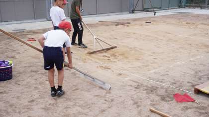 本日から幅跳びの単元に入ったという事で、跳び方だけでなく測り方や整備の仕方も説明を受けていました。