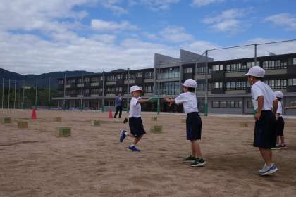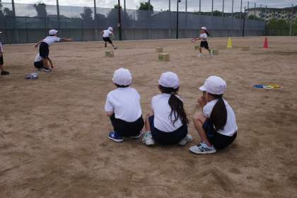 授業の様子 1年生 公開日 2025/10/24 更新日 2025/10/24 1年生 秋晴れの空の下、1年生がリレー遊びの学習をしています。リングバトンを上手に受け渡すのがポイントになりそうです。応援の子もきちんと座って応援できているのも素敵でした。
