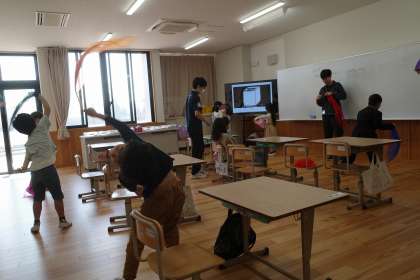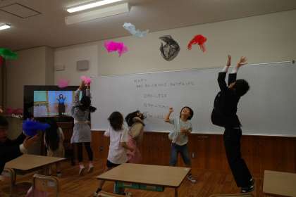 授業の様子 前期1組 公開日 2025/10/28 更新日 2025/10/28 1組 先日、前期1組の音楽ではスカーフを使って「スカーフリトミック」という活動を行っていました。色とりどりのスカーフを、音楽に合わせて、揺らしたり、広げたり、飛ばしたり、回したり。とても楽しそうに活動していました。