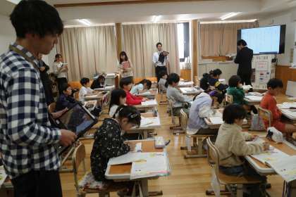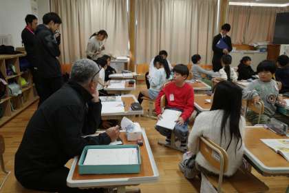 3年4組の道徳の学習。校内での研修として、先生たちによる授業参観も行われました。多くの先生たちが見つめる中、少し緊張しながらも、自分たちの考えをたくさん発表する姿が見られました。