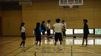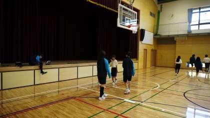 8年生は体育の授業でグループごとに創作ダンスを作っていました。