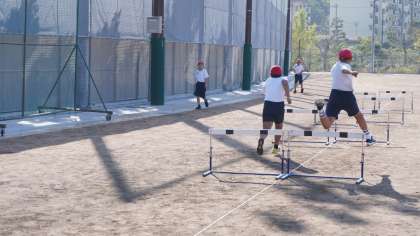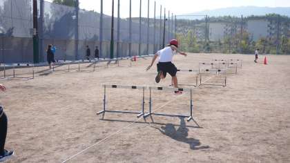 ハードル走 公開日 2025/10/30 更新日 2025/10/30 6年生 6年生は体育の時間にハードル走を行っています。 インターバルの歩数を揃えたり、スピードが落ちないようにあまり高く跳ばないように気をつけたり、自分のめあてに向けて頑張っています。
