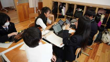 7年生は校外学習に向けてグループごとに活動をしていました。
