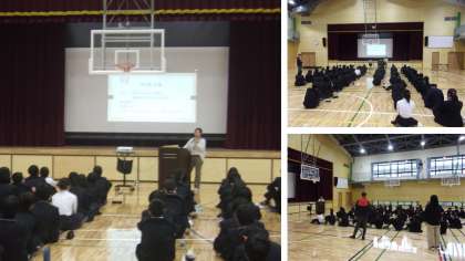 チャレンジ体験事前集会 公開日 2025/10/31 更新日 2025/10/31 8年生 チャレンジ体験を来週に控え、集会が行われました。子どもたちは、あいさつや服装、時間を守ることなど、社会人としての基本的なマナーについて確認しました。先生の話を真剣に聞きながら、メモを取ったり質問をしたりする姿から、体験への意欲と緊張感が伝わってきました。来週の体験に向けて、心の準備を整える大切な時間となりました。