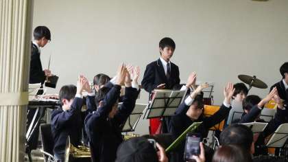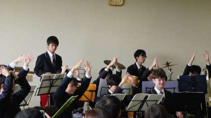 吹奏楽部は曲披露してくれました。 『乾杯』『ふるさと』『YMAC』どの曲も会場を盛り上げてくれました。