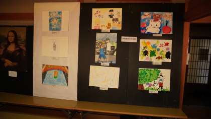 展示会場には美術部の作品と各学年から1点ずつ展示されています。
