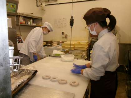 チャレンジ体験-3- 公開日 2025/11/06 更新日 2025/11/06 8年生 『志津屋』 志津屋さんでチャレンジ体験を行っている生徒たちは、商品の陳列や裏では商品作りなど、多くの作業を教えていただいていました。