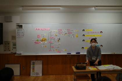 国語で大豆の説明文を学習する隣の教室では、栄養教諭が大豆について食育の観点から授業をおこなっていました。