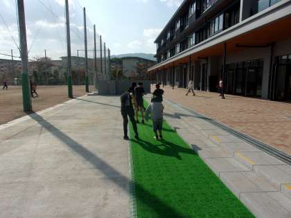 グラウンドから校舎に戻る際には