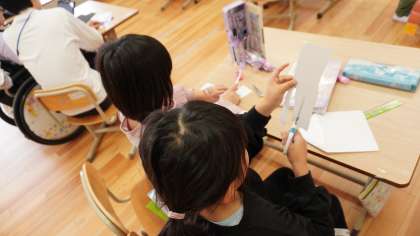 それぞれが折り紙やハサミを使って丁寧に作っています。