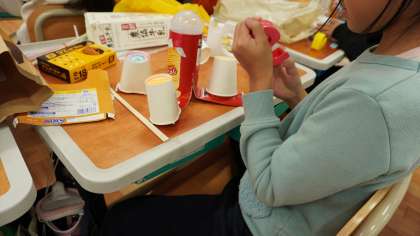 2年3組は図工の学習 公開日 2025/11/19 更新日 2025/11/19 2年生 いろんな材料を使って楽器を作っています。 ヤクルトの容器やヨーグルトのカップなど、いろんな材料で楽しい楽器が完成していっています。 どんな音色が奏でられるでしょうか。