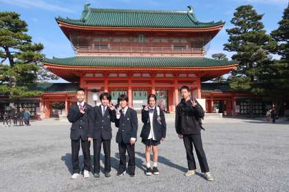 グループごとにチェックポイントを回っています。 平安神宮に到着したグループです。