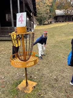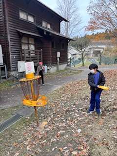 フライングディスク。班でアドバイスをし合ったり声援を送り合ったりと素敵な時間が流れています。