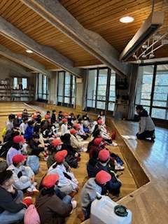 フライングディスクを終え、諸注意を聞いて部屋に入室します。気温も比較的過ごしやすいです。