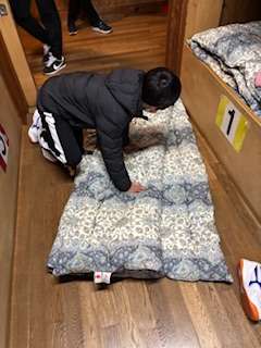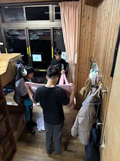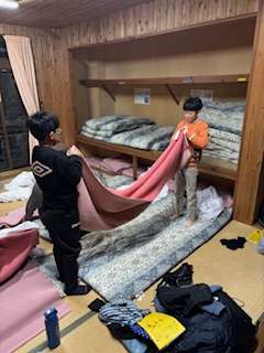 眠い目をこすりながら、寝具整頓や歯磨き、荷物整理頑張っています。