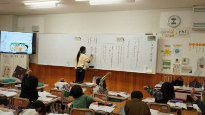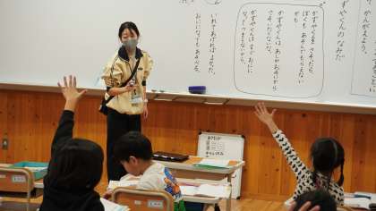 1年生は道徳で、だれとでもなかよくすることについて考えていました。