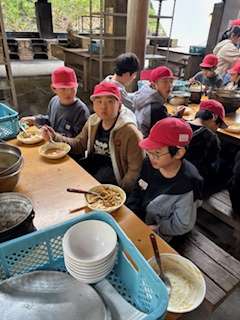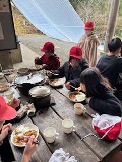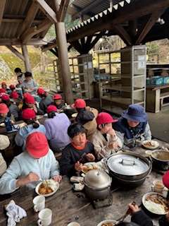 野外炊事。たくさんおかわりもしていました。