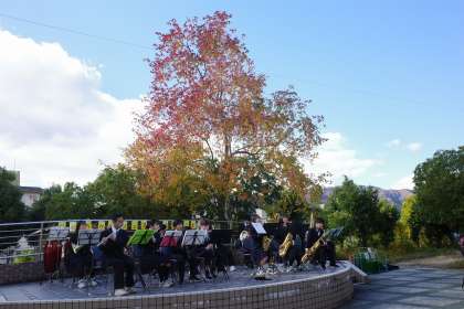 「児童館フェスタ」のオープニングは、洛西陵明小中学校の吹奏楽部が飾ります。気持ちの良い青空の下、素敵な演奏を披露しました。